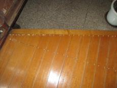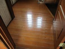 | 廊下のフローリングです。 経年の劣化と汚れが見受けられますので、玄関と廊下も新しくフローリングを張っていきます。 |