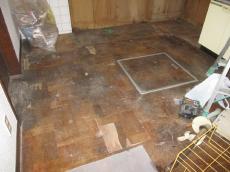 | 劣化していたキッチンの上張りを剥がした写真です。 床下は劣化し腐っていました。 |