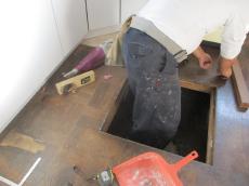 | キッチンの床も、こんなに綺麗に張替えが完了しています。 | 床下収納も綺麗に取り付けられています。 |