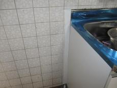 | 新品のキッチンが設置されました。 | キッチンの後ろには隙間が出来ております。 | こちらも隙間を埋める施工を加え、作業完了です。 |