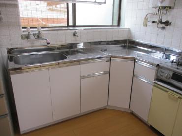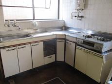 | こちらは施工前のキッチンです。 長年の使用感が出ています。 |
