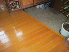 | このように施工を加え、段差を解消していきます。 | フローリングを張る作業も引き続き続いていきます。 | これで段差も気にならないですね。 |
