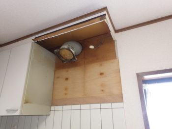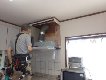 最後にキッチンレンジフードの交換作業へと移っていきます。