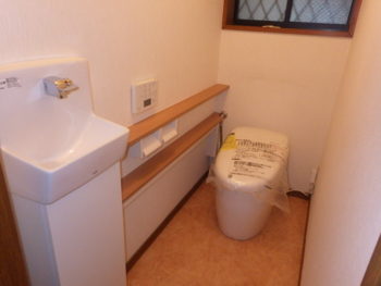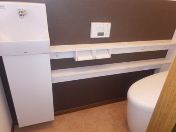 一階のトイレも二階同様、TOTOネオレストに手すりカウンター、手洗い機が設置されました。