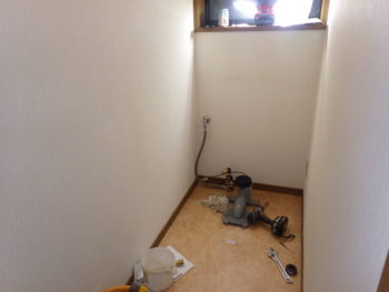 まずはお二階のトイレリフォーム、便器撤去が完了いたしました。