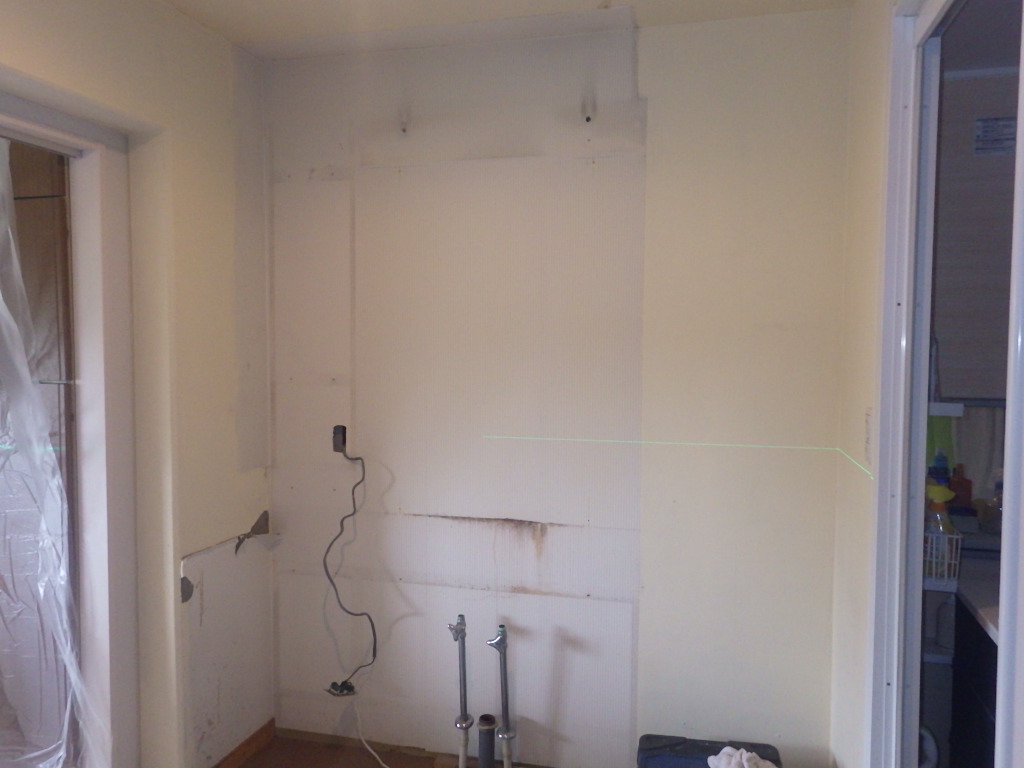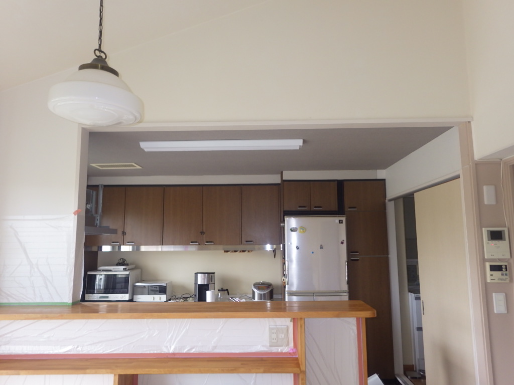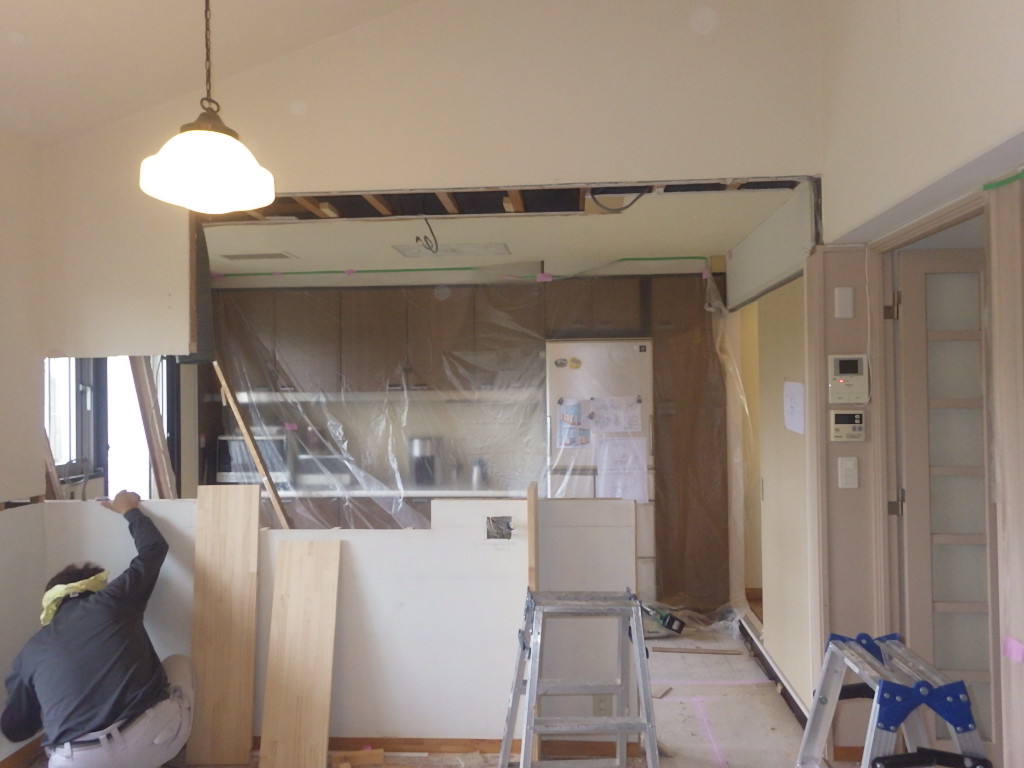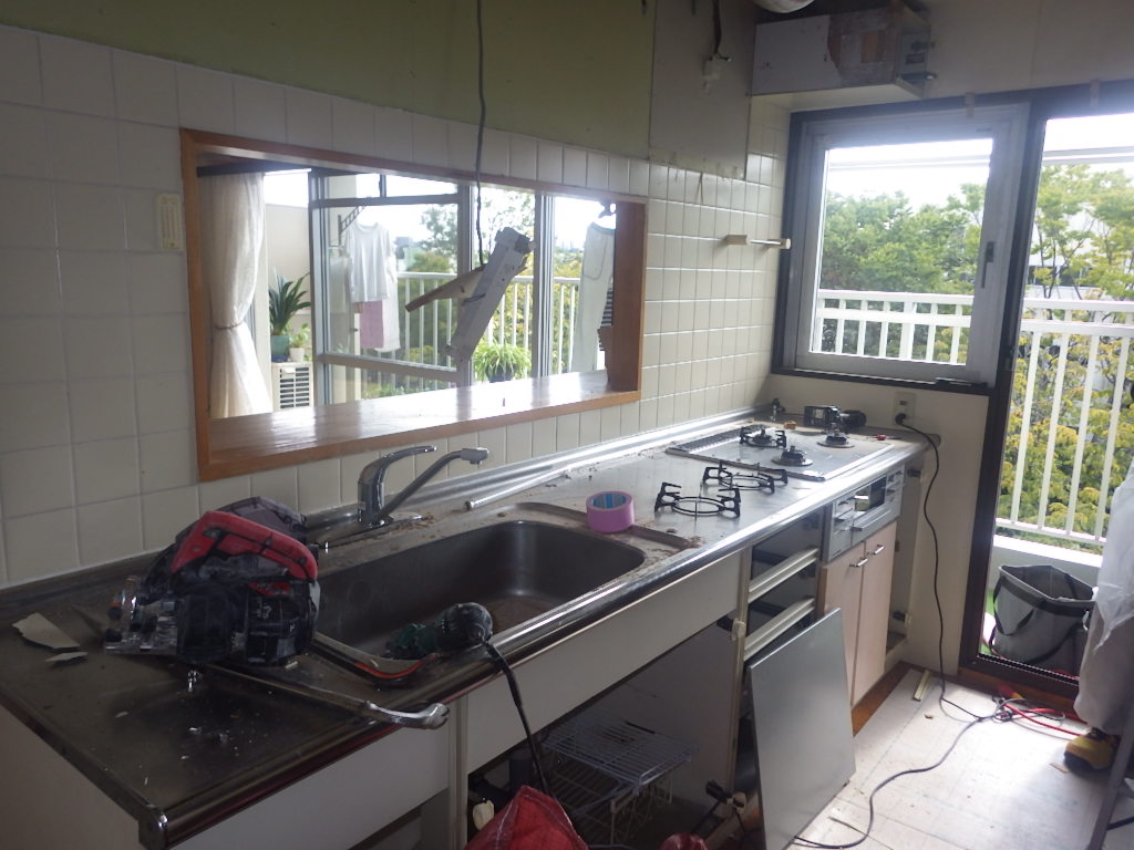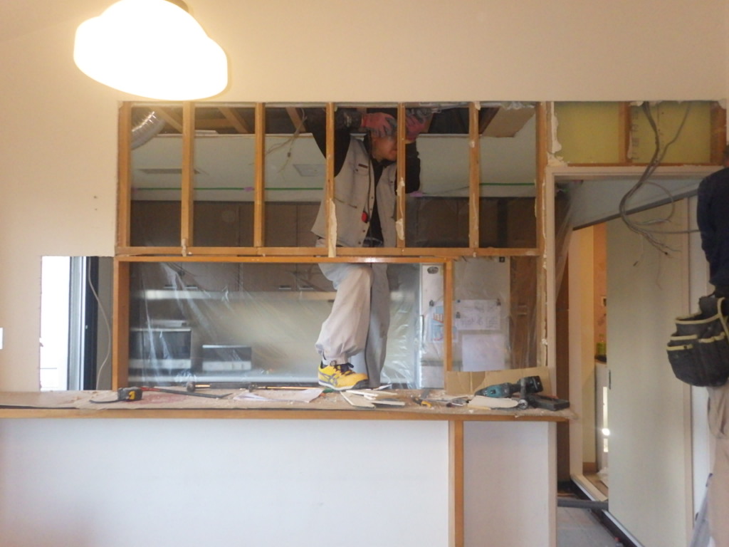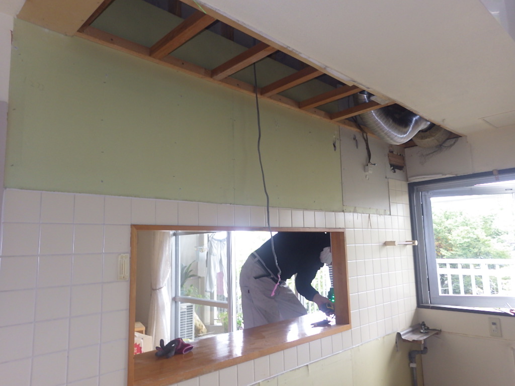 既存キッチン解体と合わせて、吊戸棚の撤去が完了しました。