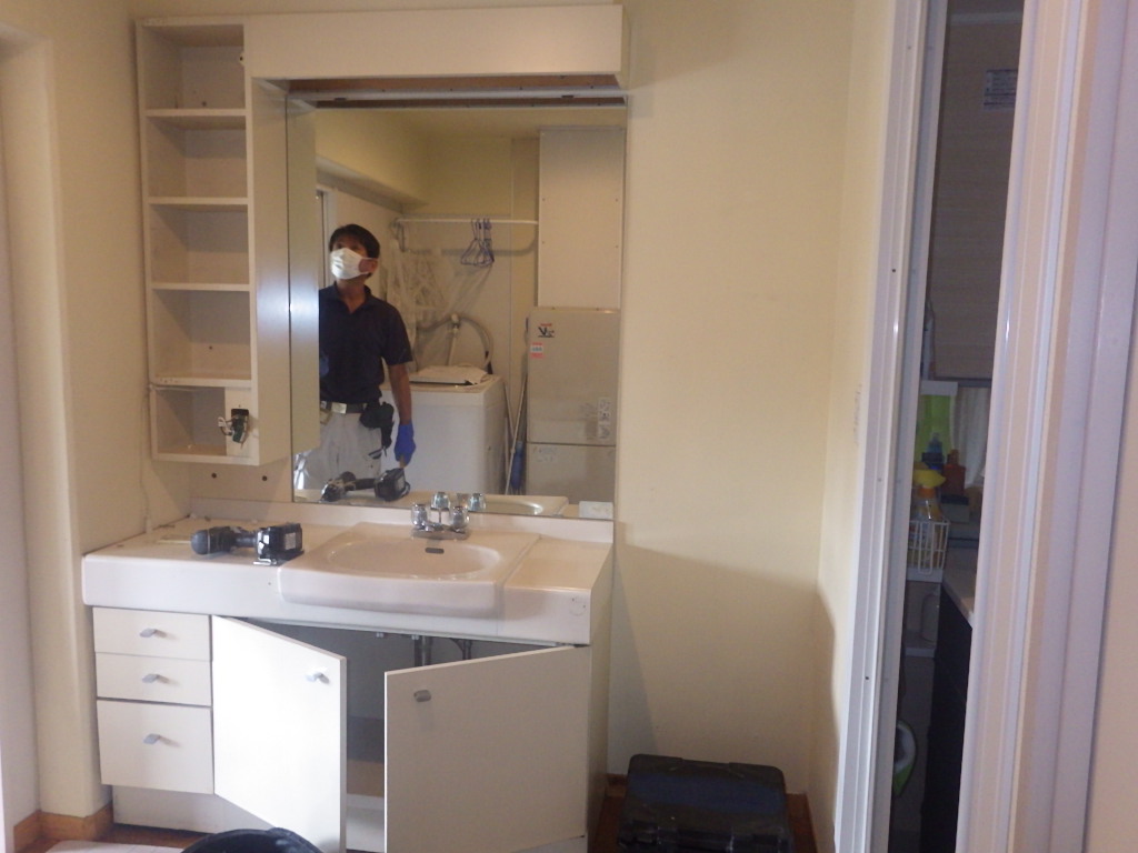 まずは既存洗面化粧台の撤去作業より行っていきます。