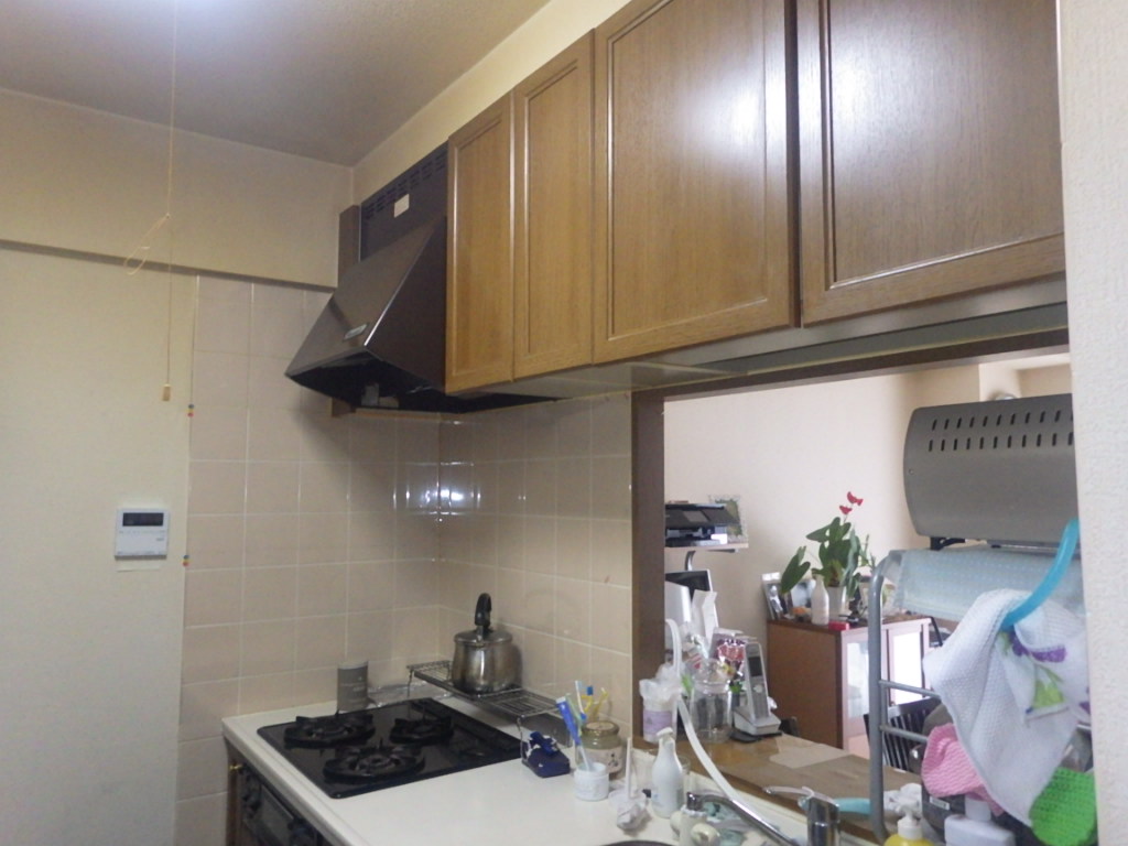 まずは既存キッチンとレンジフード、吊り戸棚を撤去いたしました。