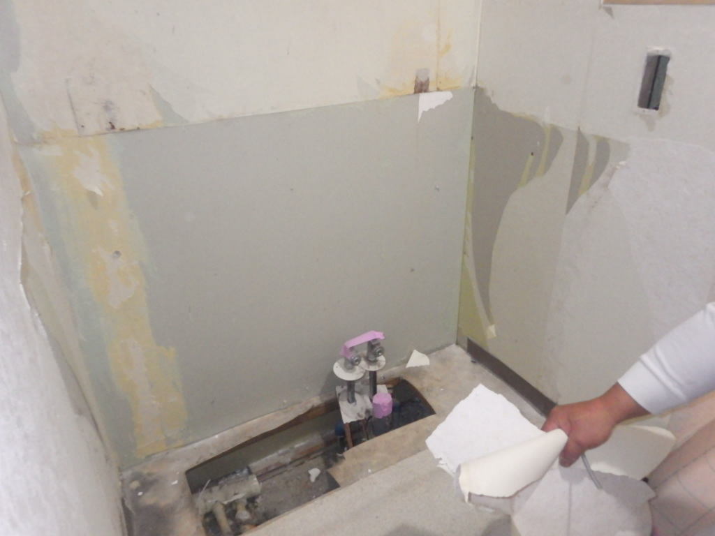 まずはマンション通路や廊下などを丁寧に養生した上で、既存設備の解体作業を行ってまいります。