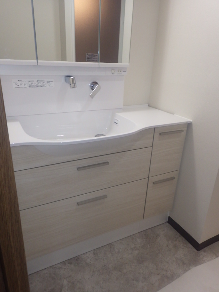 洗面化粧台はTOTO オクターブスリムへと交換を行いました。