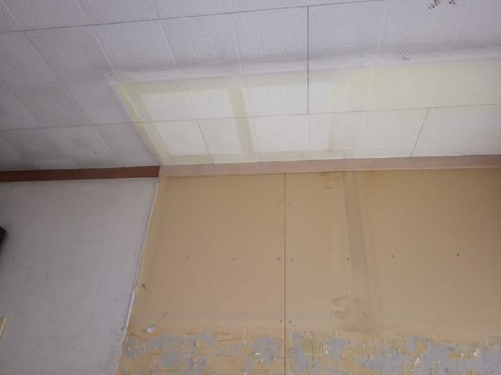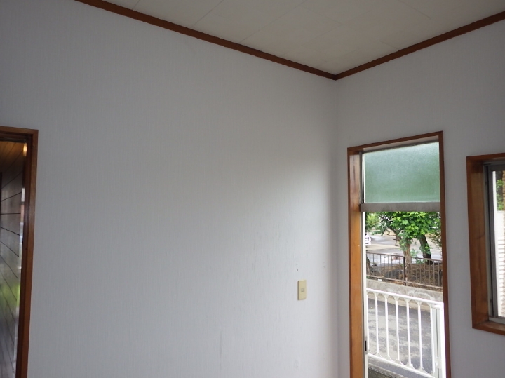 | 油染みの跡が全く分からなくなるほど綺麗に塗装がされました。真っ白な天井が気持ちいいですね。 | ここからは壁面クロス張りに移ります。 まずは下地調整のためにパテ処理を施していきます。 |