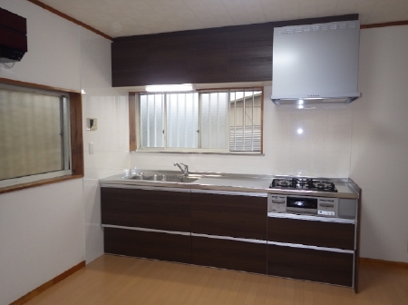 リフォーム概要工期5日間 内容・キッチン交換・キッチン床フローリング張替 ・キッチン天井塗装 ・キッチンクロス張替 ・エアコン交換 ・廊下床張替え |