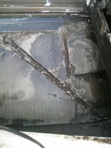 水に濡れてクロスは剥がれ石膏ボードはふやけて今にも落ちそうになっていました。傷んだ部分を切り取り新しい石膏ボードを貼り、クロス貼り替えして仕上げました。 |