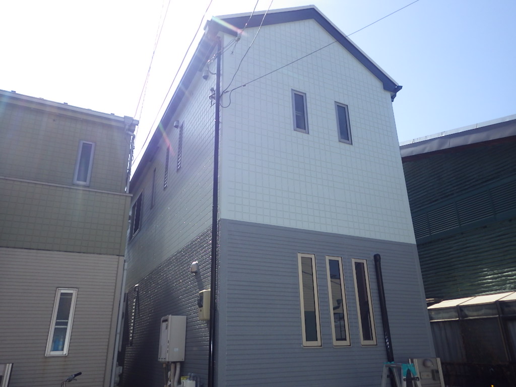 ツートンの落ち着いた色味で塗り替えを行うことで、新築のような輝きを取り戻しました。