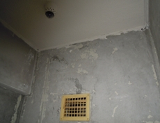 | 壁紙をすべて剥がしました。この後便器も撤去し、床の施工も行います。 | この撤去を丁寧に行うことが仕上がりを左右します。 | 段差を無くすために、木枠で床の高さを合わせます。 |